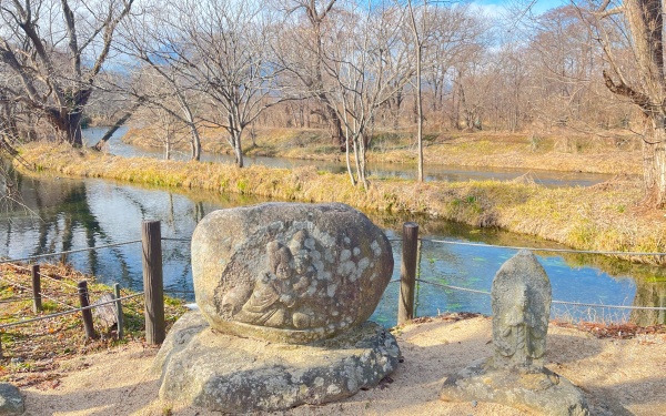 安曇野には道祖神が400体ほどあるといわれています。道祖神を見つけながらの旅行も楽しいです。写真の道祖神、旅人を守る道祖神かな?広大な敷地を散策しながら、美しい安曇野の景色をお楽しみいただけます。
