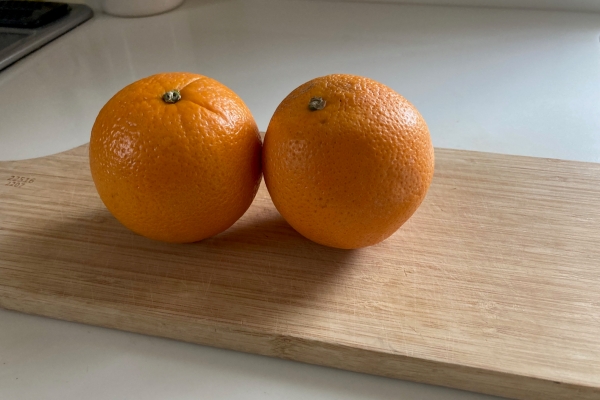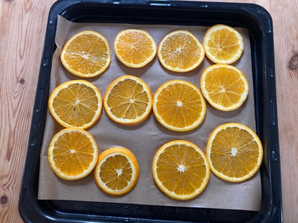 オーブンで1時間焼いたオレンジです。いい匂いです。この時点では、まだ実の部分が柔らかいので、2~3日程度、天日干しして下さい。実の部分は何日経っても多少ペタペタとしていますが、気にならない程度です。
