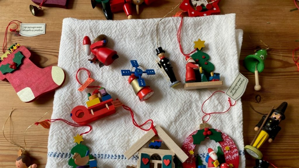 子どもが小さい頃から、軽井沢のエルツおもちゃ博物館に行くたびに買い足してきたオーナメント。たくさんあって、毎年は飾れないので順番にお披露目しています。