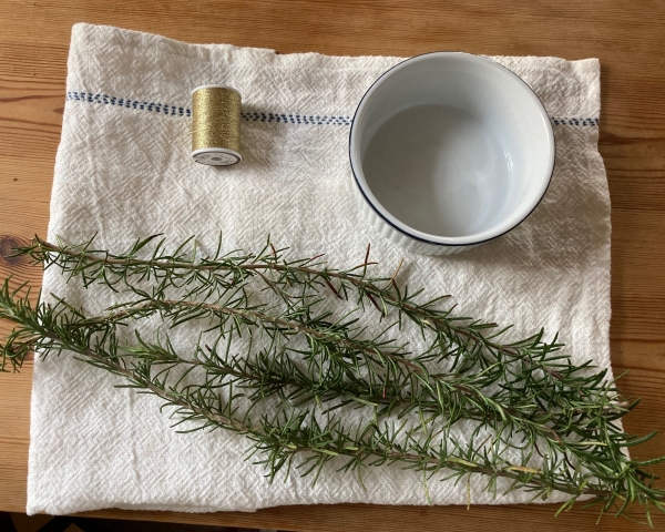 1つのリースに2本ローズマリーを使います。