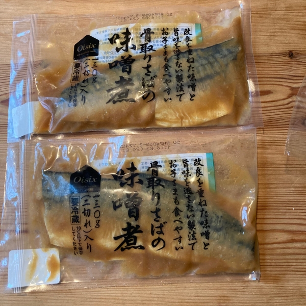 骨がなく、とってもやわらかくレンジで温めるだけのさばの味噌煮。